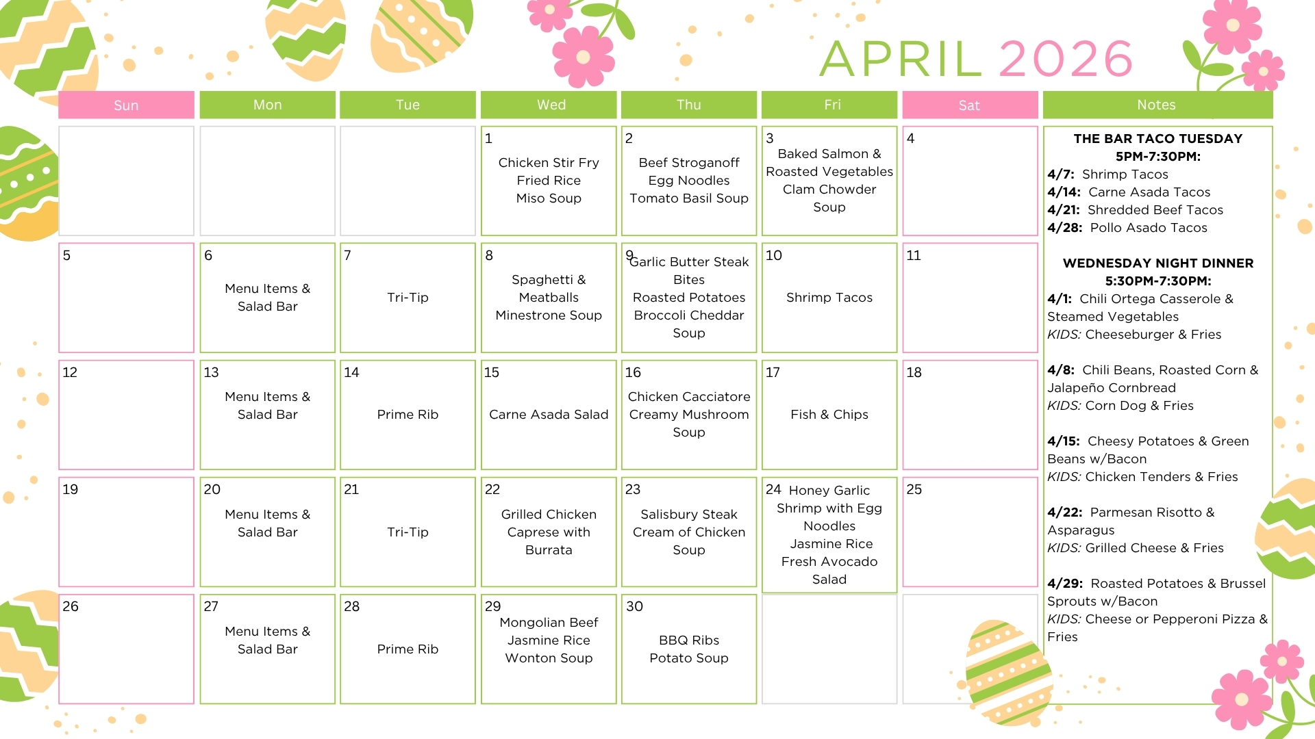 Wednesday Night Dinners are served from February through October from 5:30 p.m. until 7:30 p.m. Members and their guests only.